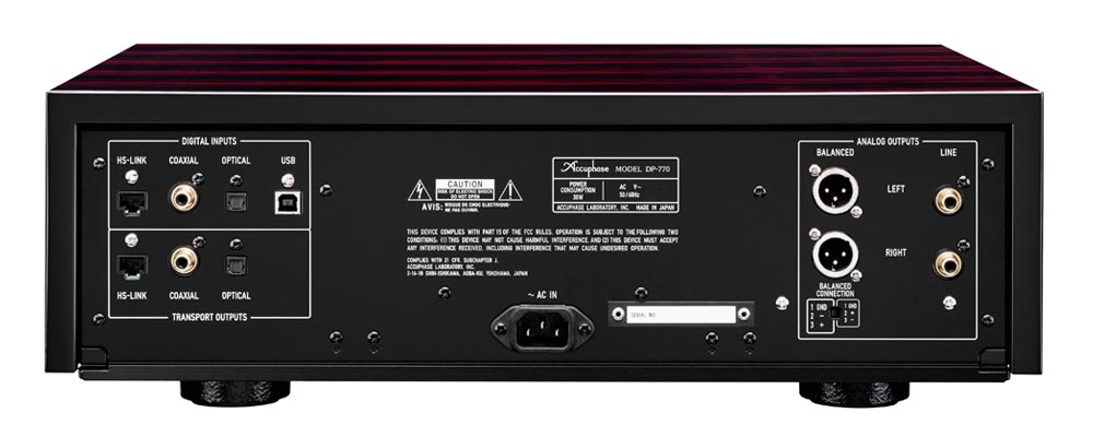 Dank des von Accuphase angewendeten MDSD Prinzips, bei dem die Signalausgabe des hochwertige DAC-Chips (ES9028PRO von ESS Technology Inc.) an acht parallele Wandlerkanäle erfolgt, wurde die Wandler-Güte im Vergleich zu einem einfachen Digital/Analog-Wandler um den Faktor von ca. 2,8 (=√8) verbessert. Der Signalrauschabstand konnte gegenüber dem DP-750 um 12% verbessert werden. Der von Accuphase in der Ausgangstufe eingesetzte „Direct Balanced Filter“ verfügt über komplett getrennte Schaltwege für Line- und symmetrische Signale, um unerwünschten Wechselwirkungen zu vermeiden. Ein vielseitiges Angebot an Ausgängen und digitalen Eingängen komplettiert den DP-770. Voicing-Equalizer oder andere digitale Geräte lassen sich ganz einfach anschließen. Der USB-Anschluss unterstützt Abtastfrequenzen bis 384 kHz / 32 Bit und 11,2896 MHz (1-Bit DSD); das macht den DP-770 auch zum idealen DA-Prozessor für Streaming.