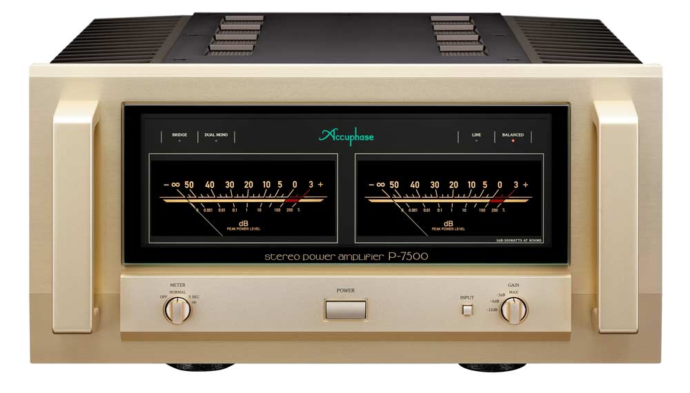 Accuphase hat eine inzwischen fast 50 jährige Historie im High End Endstufenbau, die im Jahr 1973 mit dem Erscheinen der P-300 begann. Die neue Accuphase P-7500 führt diese Tradition eindrucksvoll fort und bricht in dieser langen Historie alle Rekorde was ihre „State-of-art“ Performance betrifft. Als nunmehr Viertes Modell der 7000der Baureihe ist die P-7500 nicht weniger als die leistungsstärkste Stereo-Endstufe die Accuphase jemals gebaut hat! Unglaubliche 300 Watt an 8 Ohm / 600 Watt 4 Ohm pro Kanal, bei einen um 11% verbesserten Signal-Rauschabstand von 130dB und ein hoher Dämpfungsfaktor von 1.000, zeigen den enormen Aufwand welchen die Accuphase Entwickler bei der Neukonstruktion betrieben haben. Die neuen Endstufenmodule der P-7500 sind mit je 10 „High Output“ Bipolar-Transistoren aufgebaut, deren Spannungsversorgung erfolgt mit einen extrem leistungsstarken Netz-Transformator und zwei „custom made“ Filter-Elkos von je 60.000 μF Speicherkapazität.
